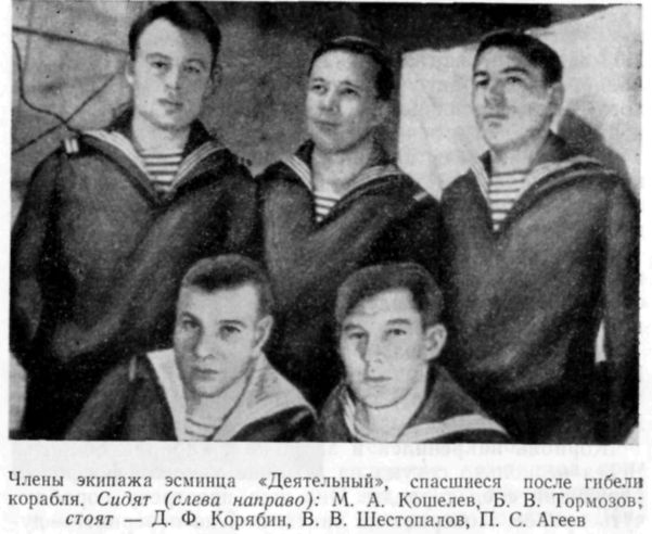 "Дерзким". Осветив прожектором место гибели "Деятельного", мы увидели на